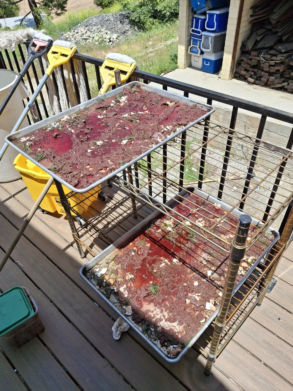 Everything we were trying to salvage on the porches drying, protected from imminent rain. I was worried that if it flooded again everything on the porch would be whisked away. But, if we left it inside it could mold.